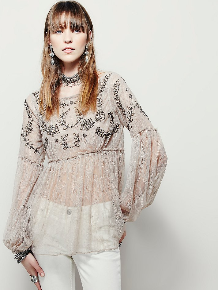 Free People Womens Unicorn Lace Top in Natural - Lyst