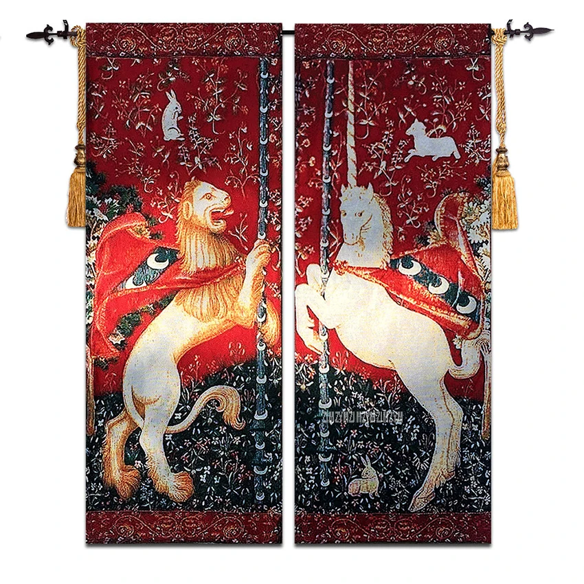 37*98cm Lion And Unicorn A Pair Belgium Art Wall Tapestry ...