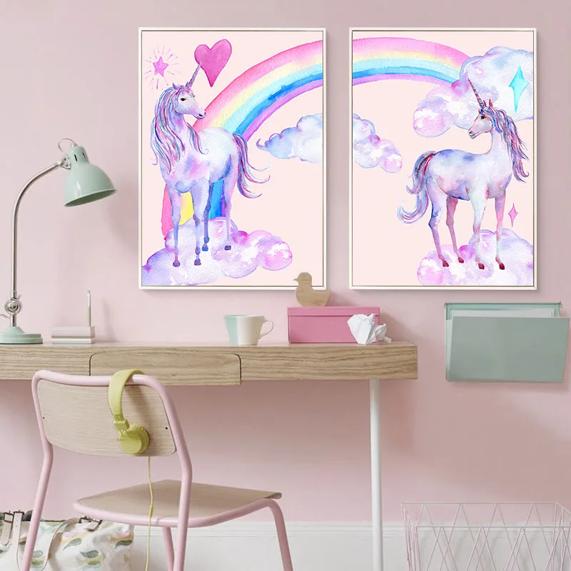 Cute Unicorn Rainbow Canvas Painting Nursery Wall Art ...