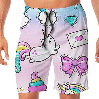 Amazon.com: Men Quick Dry Funny Cute Unicorn Beach Shorts ...