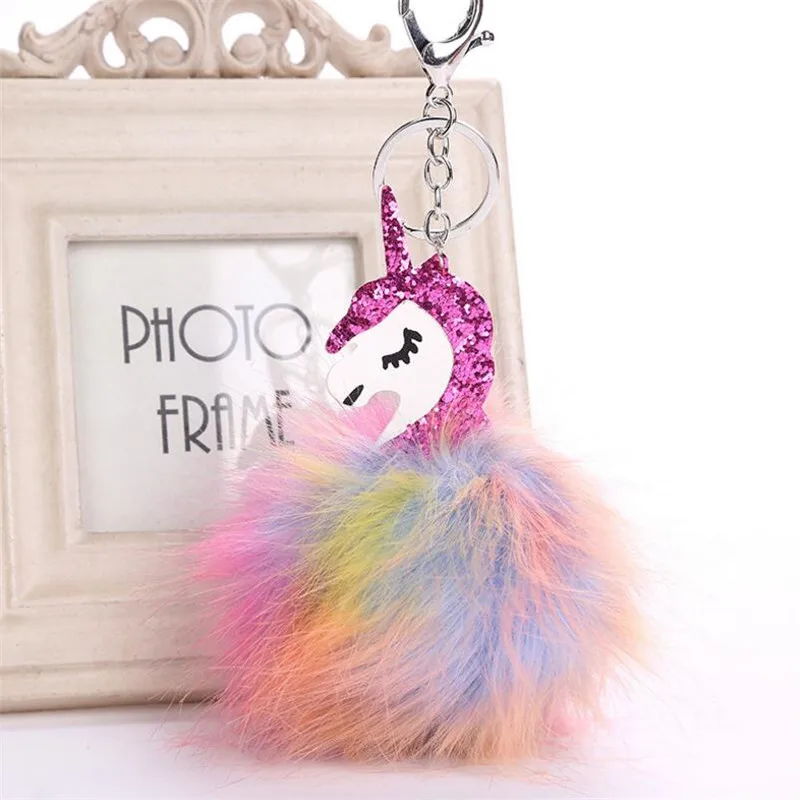 Unicorn Pom Pom Keychain. Cute Plush Pompom Unicorn Keychain Round Ball Pom Pom Faux Rabbit Fur Key Chain Trinket Car Bag Bell Key Ring Gift Porte Clef. You won't have to worry about one color You are now finished assembling the Unicorn Pom Pom with Rainbow mane.