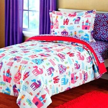 Unicorn Twin Sheet Set. This unicorn toile brushed microfiber fabric sheet set fits all standard twin size mattresses and is machine washable for easy care. Twin Sheet Set Includes Fitted Sheet, a Flat Sheet and Pillow Case.