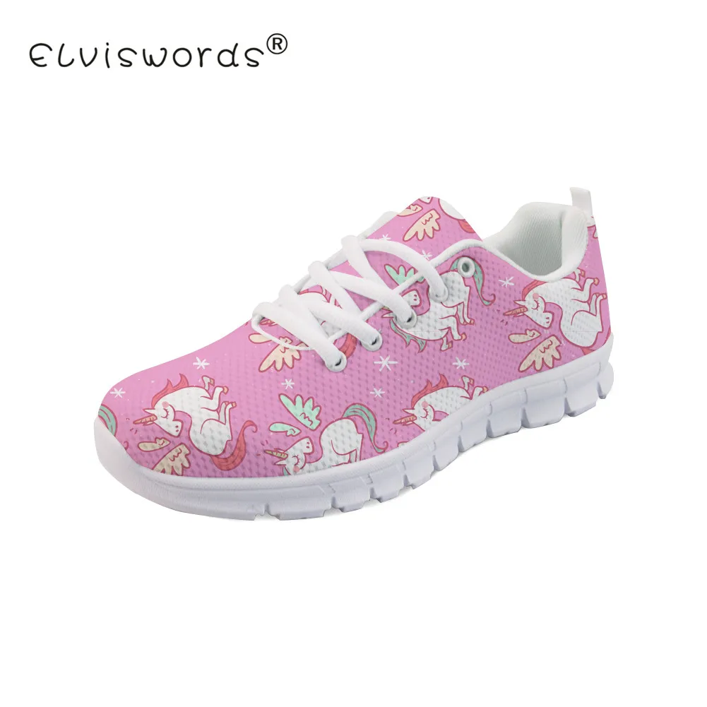 ELVISWORD Cartoon Unicorn Printed Women Flat Shoes Ladies ...