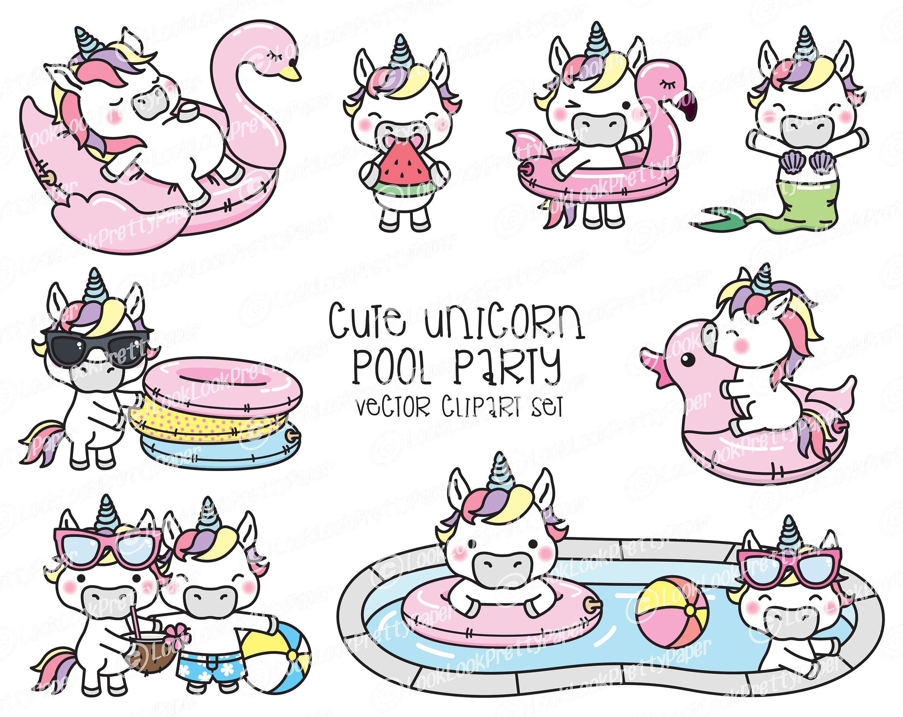 Premium Vector Clipart Kawaii Unicorn Cute Unicorn Pool | Etsy