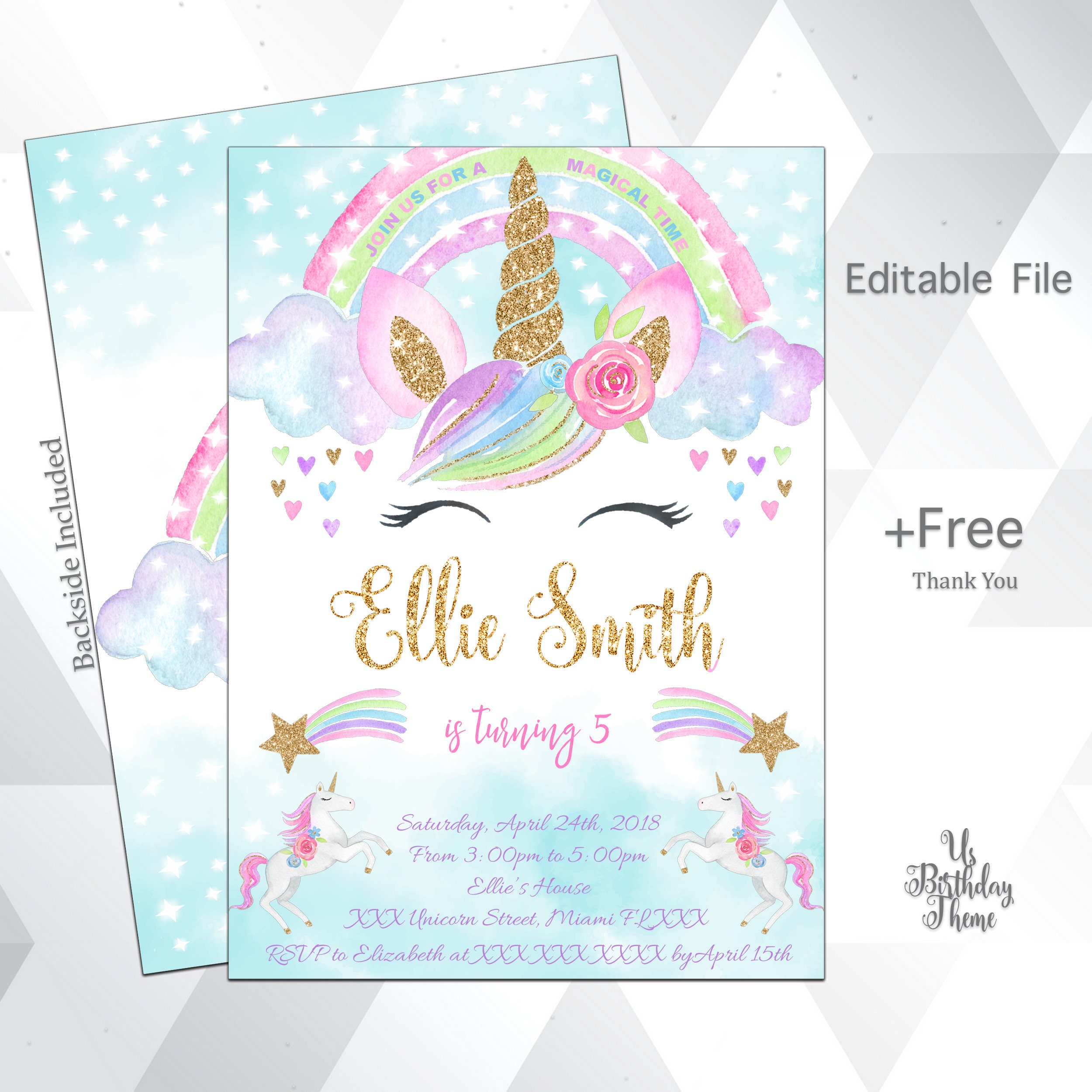 Unicorn Birthday Invitation, Printable, Customized, DIY ... (Glenn Pratt)